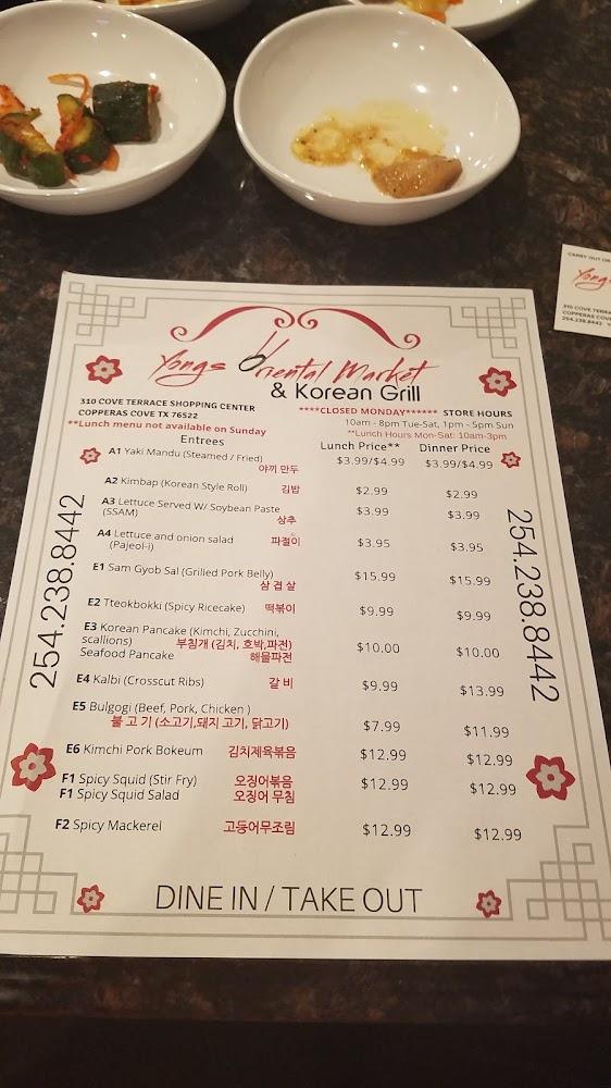 Discover the authentic taste of Korea at Yongs Oriental Market & Korean Grill, nestled in Copperas Cove, TX. Our restaurant offers comforting Korean dishes, from savory grilled options to delicious ramen, all at an affordable price range of $10-$20. With quick service and a welcoming atmosphere, it’s the perfect spot for lunch, dinner, or a solo bite. Enjoy a diverse menu that caters to vegetarians and halal preferences, plus take advantage of our dine-in, takeout, and delivery services. Accessible to all, we invite you to experience a unique slice of Korean culture right at 310 Cove Terrace Shopping Center!